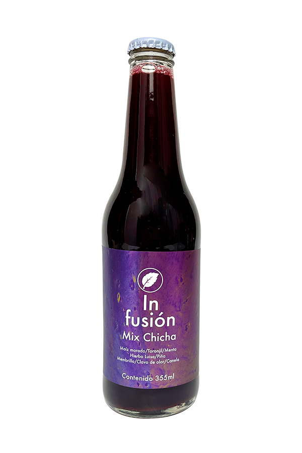 Experimenta el poder antioxidante del Mix Chicha Morada de Infusión. Con maíz morado, toronjil, menta, hierba luisa, piña Golden, membrillo, clavo de olor y canela, esta bebida te ofrece un sabor único y beneficios para tu salud. Viene en una elegante botella de vidrio de 355 ml, ideal para cualquier ocasión.