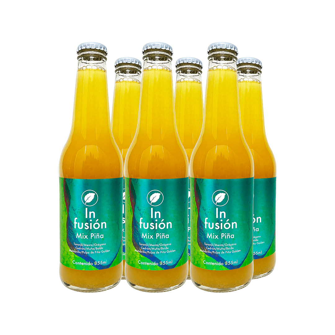 Revitaliza tu día con el sabor tropical del Mix Piña de Infusión. Con ingredientes como toronjil, menta, orégano, cedrón, muña, boldo y pulpa de piña Golden, esta bebida es una excelente opción para apoyar tu digestión y mantenerte hidratado. Disponible en botella de vidrio de 355 ml, cuidando tanto tu salud como el medio ambiente.